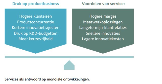 – Daarbij mag je er van uitgaan dat de marges op services vaak behoorlijk hoger zijn dan op producten. Het ontwikkelen en leveren van services vraagt namelijk lagere investeringen dan in het geval van productontwikkeling.